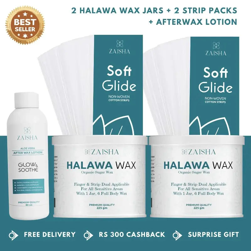 2 Halawa Wax + 2 Strips + After Wax Lotion