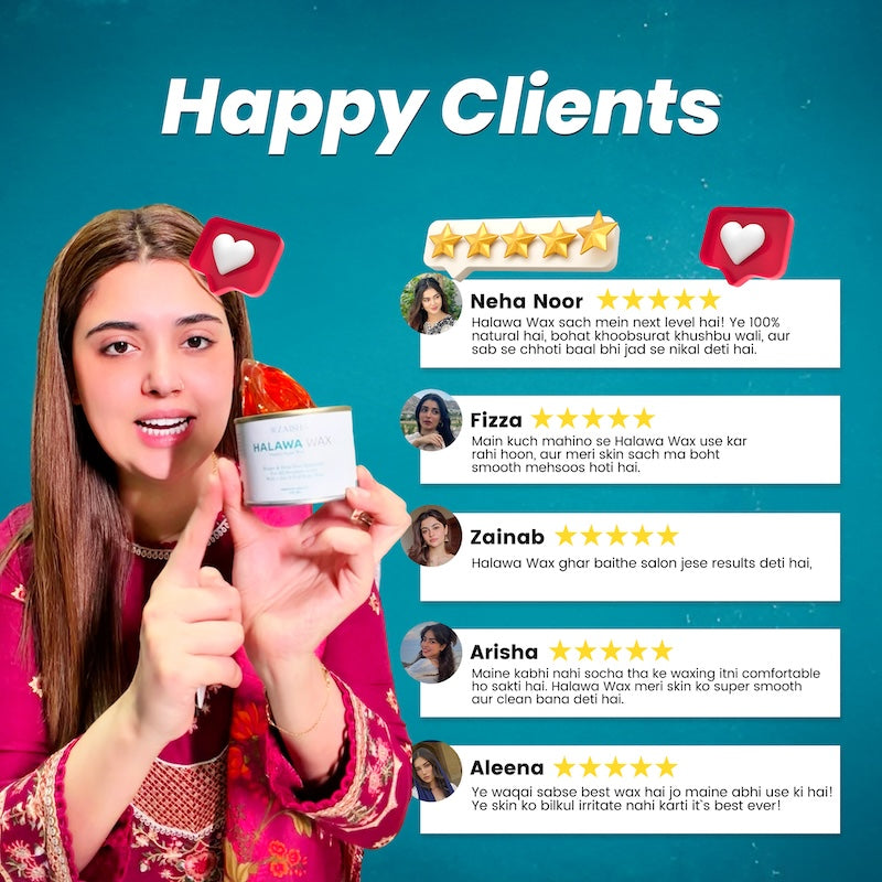 Experience salon-like smoothness at home with Zaisha Halawa Wax Hair Removal Kit — Pakistan’s favorite 100% organic sugar-based wax.